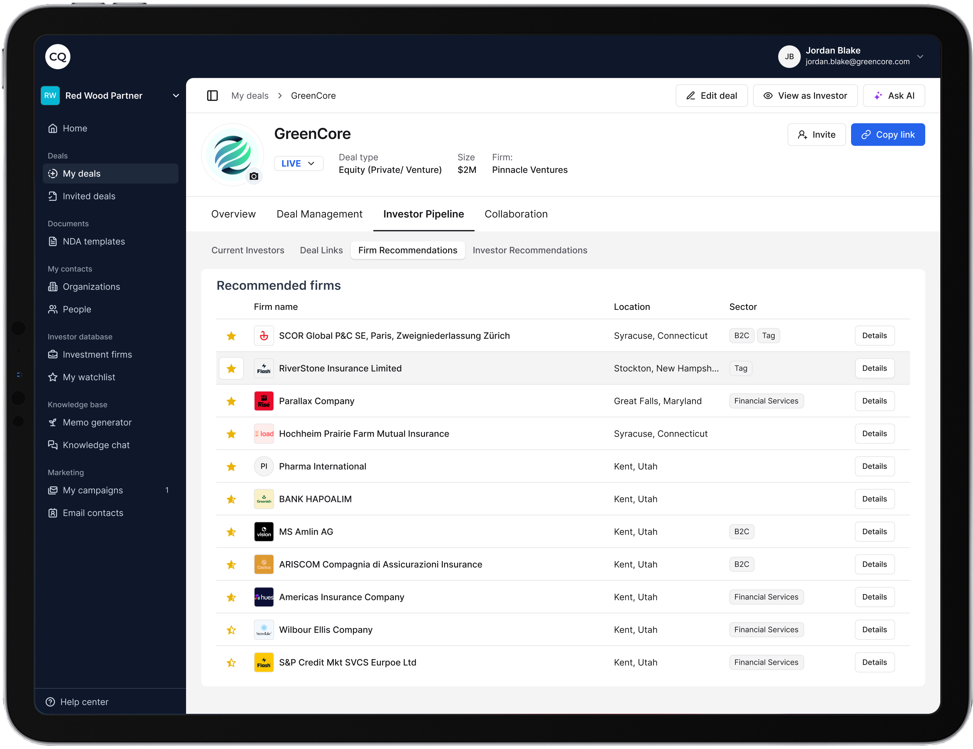Create a deal, fill out your profile, and get ranked investor recommendations in under a minute. Our AI surfaces LPs from 150K+ profiles who actually fit your strategy.